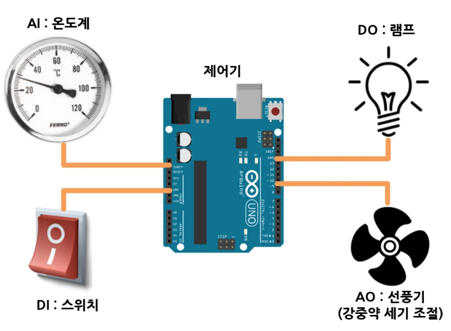 | AI | Analog Input | 연속값 | 센서 데이터 입력 |