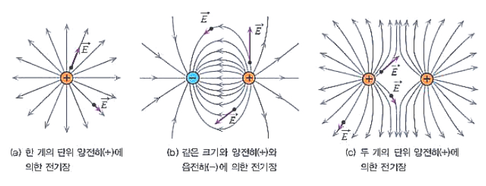 전기력선은 전하에서 발생해 전하에서 소멸됩니다.