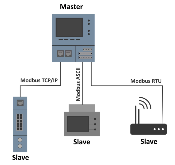 Modbus는 RTU, ASCII, TCP/IP 세 가지 변형이 있습니다.